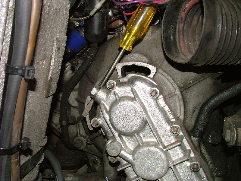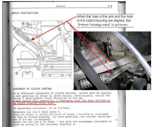 Clean all old grease off the clutch linkage arm and spring. Clean it all up and re-lube with a thin coat of grease. Crawl under the car and mount the arm using the large bolt to the bellhousing. Here is a picture of how it is mounted to the front of the bellhousing. Make sure it is oriented the correct way. I could not find a torque spec in the manual but based on the bolt size, I used 40 lbs-ft. I used the following procedure, taken from a post by Steve Magnusson on F-chat on adjusting the clutch linkage. This basically involves inserting a drill bit into the linkage to hold it in place while while adjusting the turnbuckles to get the correct alignment. The original post is here: After the clutch linkage arm is adjusted per the above procedure, attach the clutch cable to the bottom of the linkage arm using the clevis pin and cotter pin. Loosen the turnbuckle on the clutch cable and adjust it until there is 15-20 mm of free play at the clutch pedal. Put the transfer case and gearbox drain plugs back in and follow the second half of the procedure listed on Birdman's website to fill the gearbox. Check for leaks. If there aren't any, attach the breather hoses, fuel filter, oil cooler air duct and anything else that was removed in step #4. |