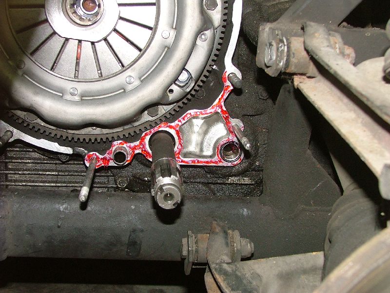 Using some suitable solvent and elbow grease, clean the mating surface on the bellhousing and the back of the engine. Make sure you get in all the nooks and crannies, especially the O-ring grooves.